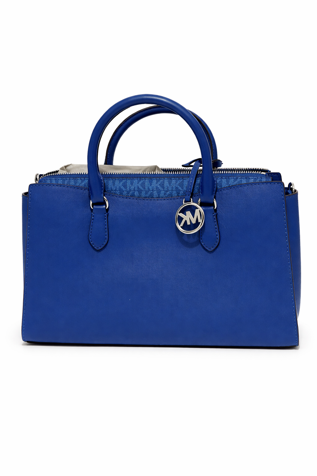Añade un toque de color vibrante a tu estilo con el bolso Michael Kors Marilyn. Este modelo satchel combina la estructura clásica y duradera del cuero Saffiano con un llamativo tono azul eléctrico. Su diseño incluye paneles laterales con el icónico monograma MK y detalles metálicos pulidos que realzan su elegancia. Es el accesorio perfecto para la mujer en Colombia que busca un bolso versátil y chic, ideal tanto para reuniones de trabajo como para salidas sociales, ofreciendo un equilibrio perfecto entre moda y funcionalidad.