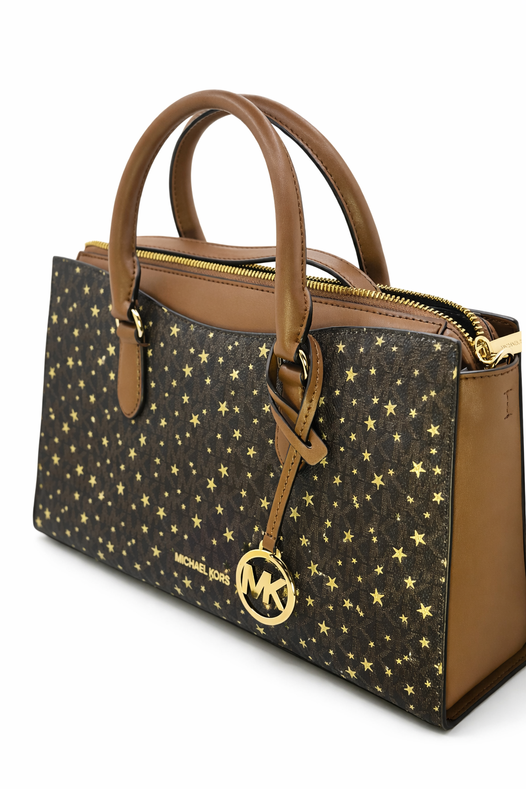 Eleva tu estilo con el bolso Michael Kors Marilyn, una pieza que combina sofisticación y diseño moderno. Este modelo destaca por su icónico monograma MK adornado con un brillante estampado de estrellas doradas, ideal para la mujer colombiana que busca exclusividad y elegancia. Con compartimentos organizados y materiales de alta calidad, es el accesorio perfecto para pasar de un día de oficina a una cena especial con total distinción.
