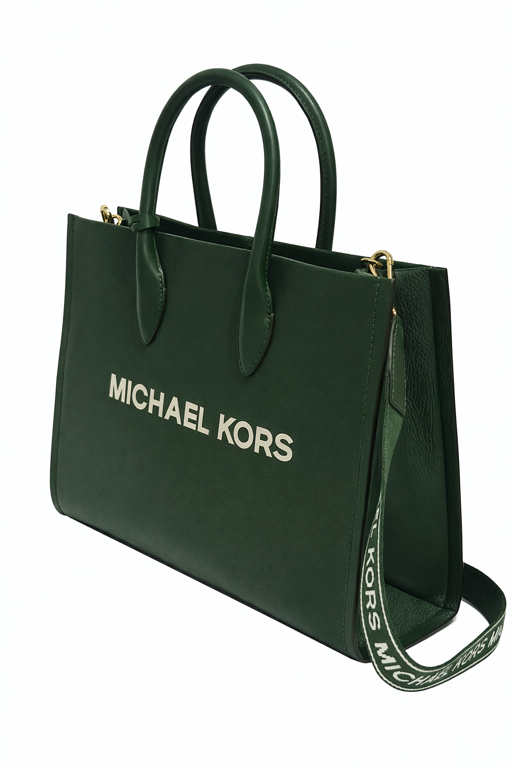 Haz una entrada sofisticada con el bolso Michael Kors Mirella. Este modelo destaca por su silueta estructurada y un profundo tono verde bosque que proyecta elegancia y modernidad. Diseñado para la mujer en Colombia que necesita espacio y versatilidad, cuenta con el logotipo de la marca en letras metálicas y una correa de tela tejida que le aporta un toque contemporáneo y casual. Es la pieza ideal para llevar desde documentos de trabajo hasta tus esenciales de fin de semana con un estilo de lujo impecable.